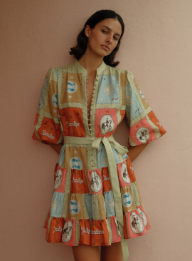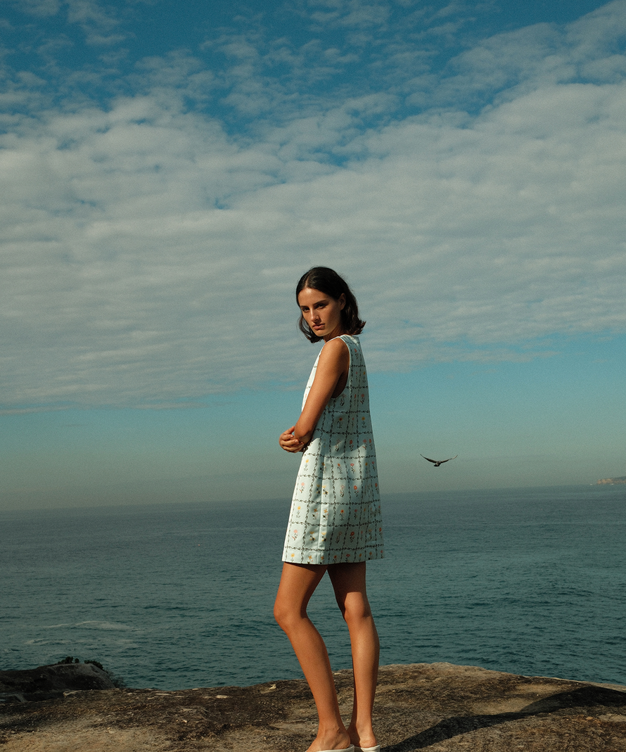 A soft palette of sky blues and sun-faded tones meets bold graphic motifs, bringing a playful energy to effortless dressing.⁠