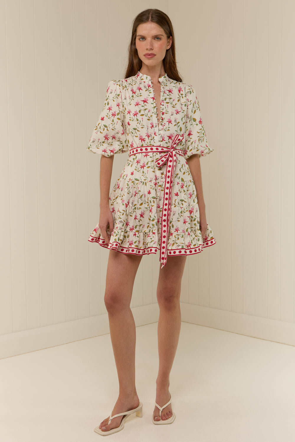Gabrielle is wearing a size 8 and is 178cm tall with an 81cm bust and a 64cm waist. The Ruba Mini Dress is fitted through the shoulders and loose through the waist with a mini length tiered skirt. For a similar fit to Gabrielle, we recommend purchasing your regular size. Please refer to the size chart linked above for standard body measurements.
