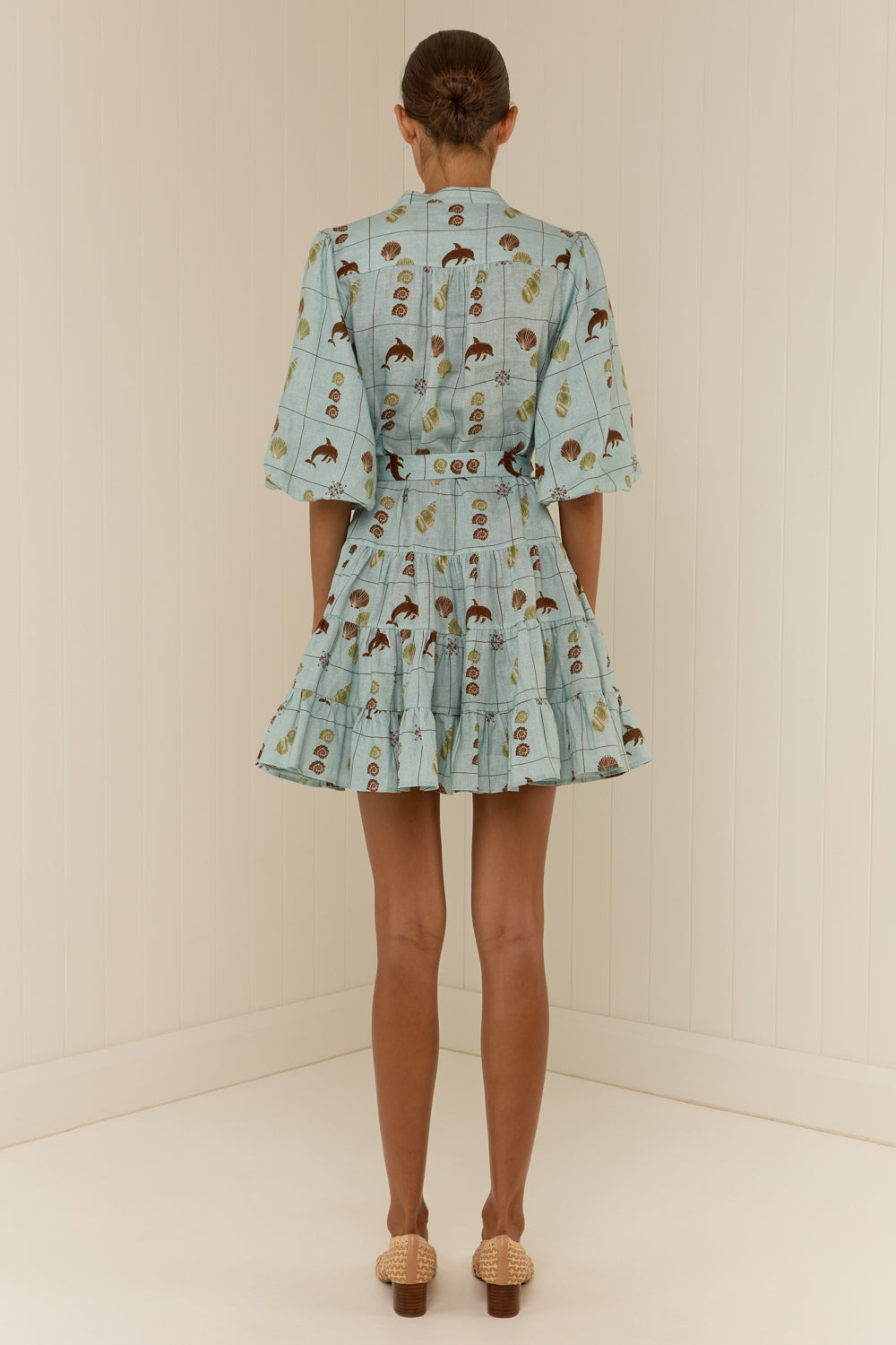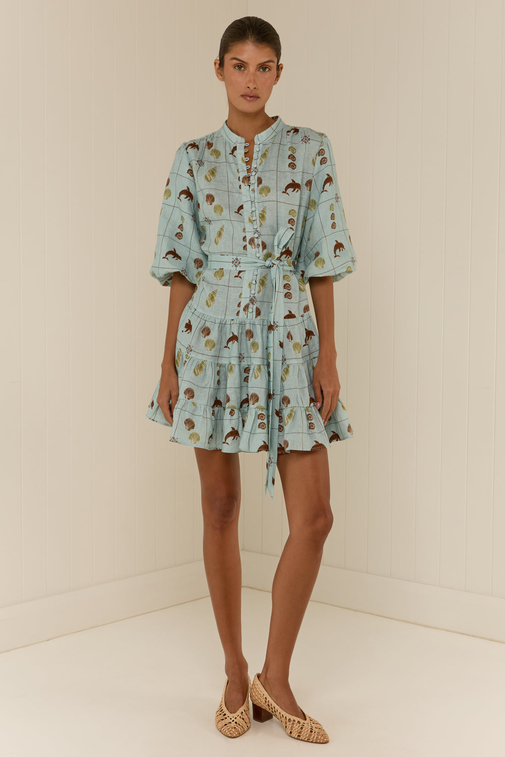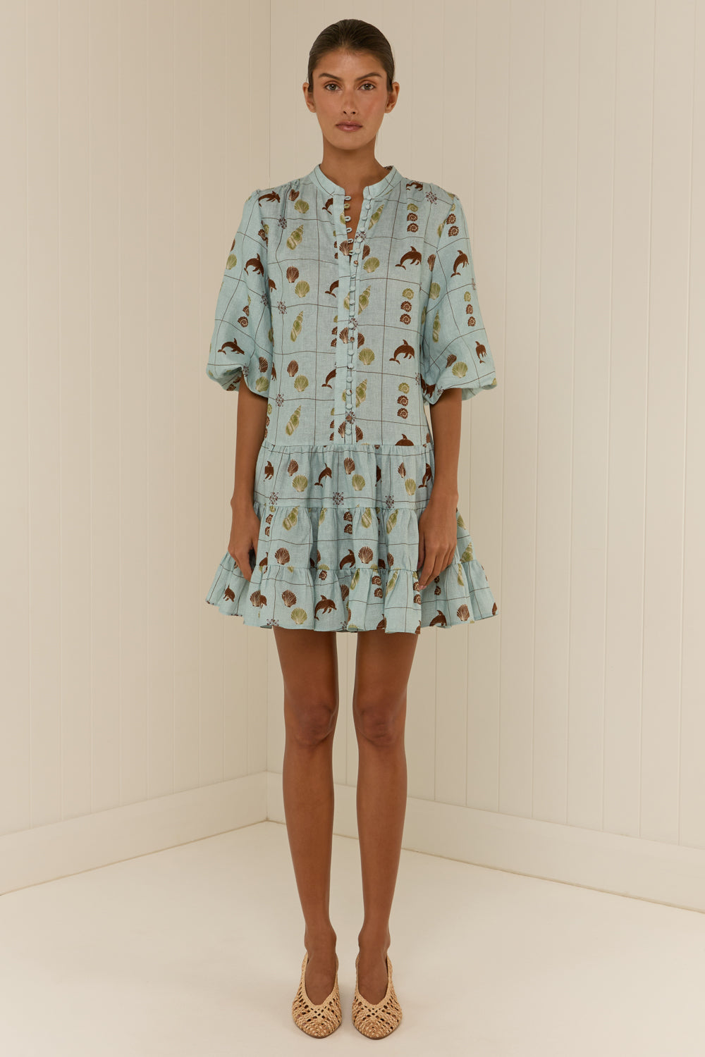 Rossana is wearing a size 8 and is 180cm tall with a 77cm bust and a 58cm waist. The Ruba Mini Dress is fitted through the shoulders and loose through the waist with a mini length tiered skirt. For a similar fit to Rossana, we recommend purchasing your regular size. Please refer to the size chart linked above for standard body measurements.