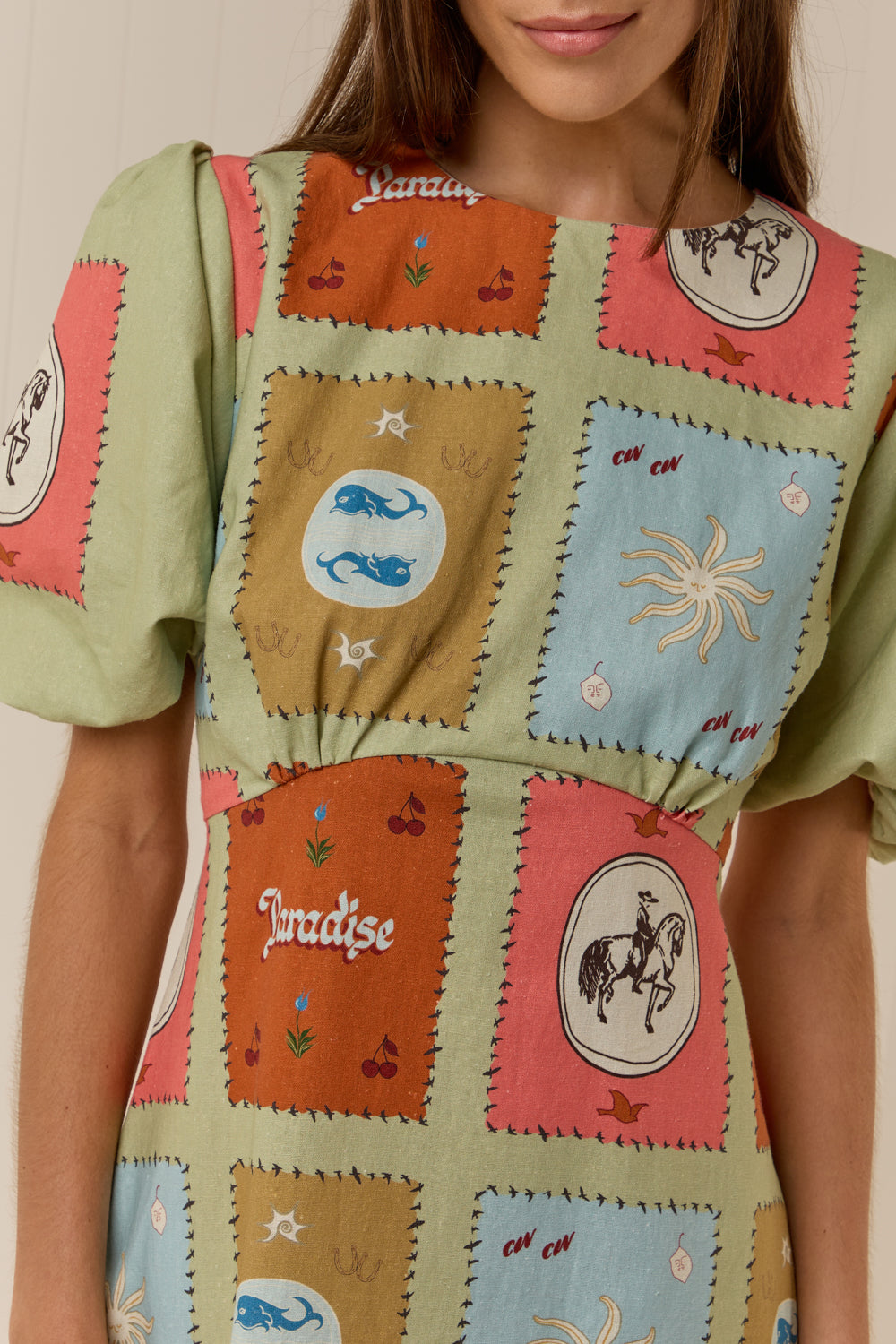 Zara is wearing a size 8 and is 177cm tall with a 76cm bust and a 62cm waist. The Titan Dress is fitted through the bust and waist, with a flowing A-line skirt. We recommend purchasing your regular size for a similar look to Zara, or sizing up for a more relaxed fit. Please refer to the size chart linked above for standard body measurements.